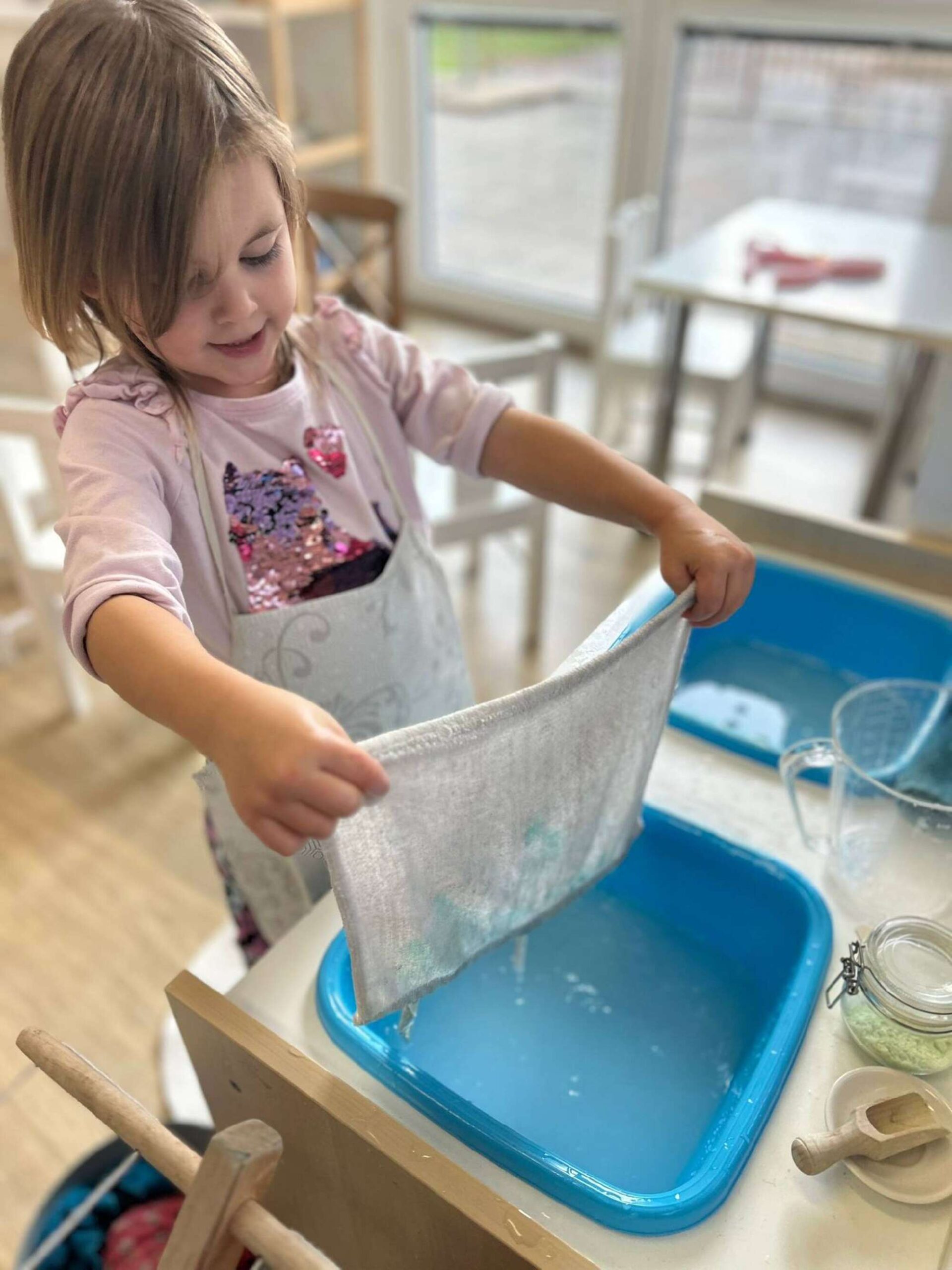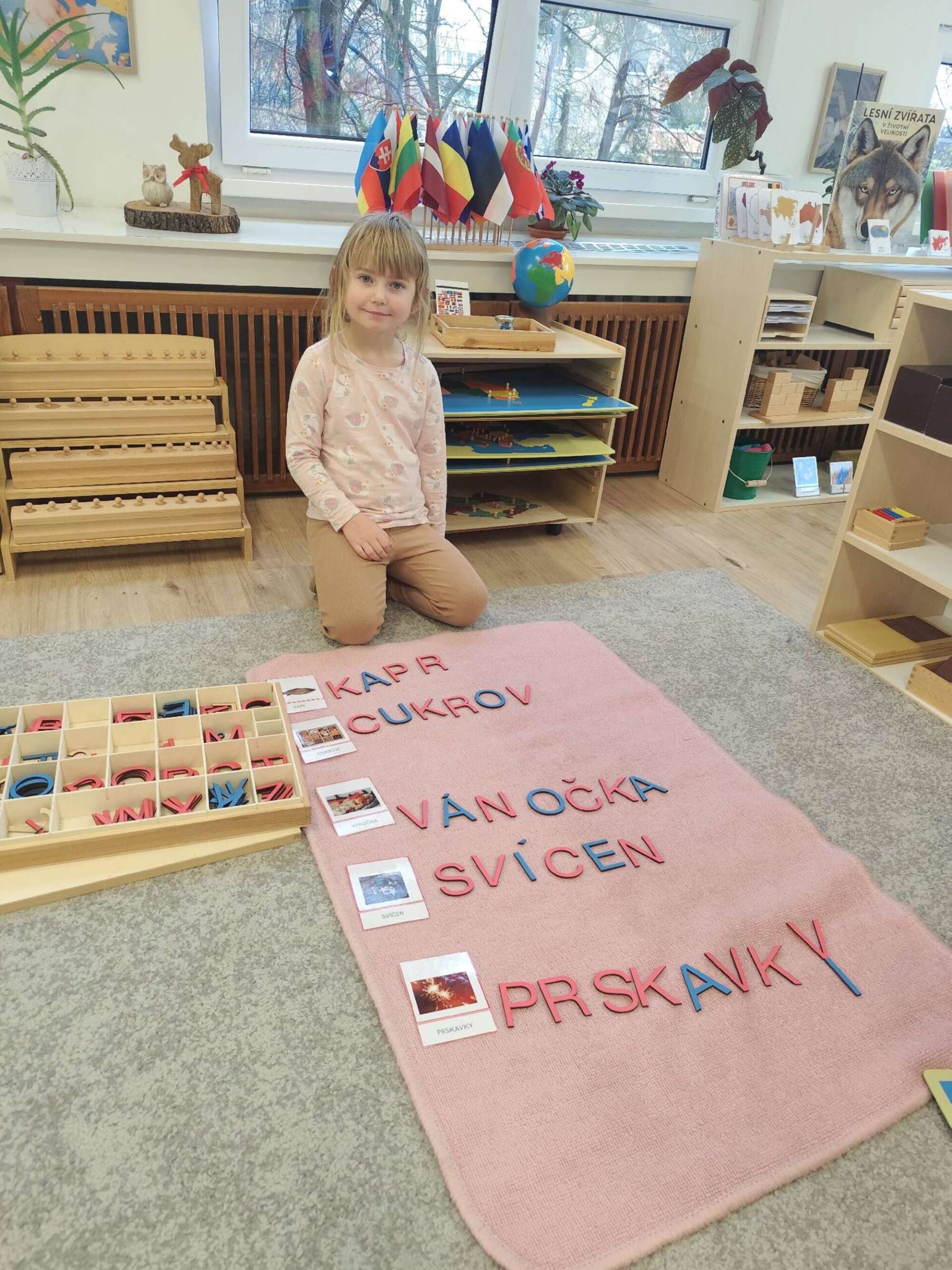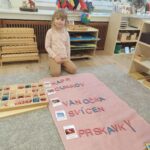 V listopadu se děti věnovaly oblíbeným činnostem z oblasti praktického života, kde si přirozeně rozvíjely samostatnost a koordinaci pohybů. Největší zájem měly o praní prádla, leštění materiálů a péči o prostředí. V matematice naši nejstarší předškoláci pracovali se známkovou hrou a velkou bankou, což jsou pomůcky, které dětem názorně ukazují rozklad čísel, desítkovou soustavu i základy prvních matematických operací. Oblíbená byla také obměněná paměťová hra podporující logické myšlení a koncentraci. V rámci smyslové výchovy děti nadchly válečky bez úchytů a vrstvené tvary. V jazykové oblasti jsme hráli hláskové hry, pracovali s čtecími krabičkami, učili se nové básničky a písničky a rozvíjeli slovní zásobu i sluchové vnímání, vše v duchu Montessori principů, které vycházejí z přirozené potřeby dítěte objevovat jazyk.